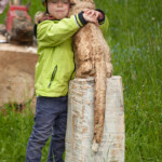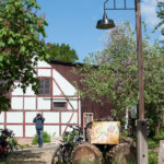 Es war ein ruhiger Sonntagmorgen, an dem wir in aller Gemütlichkeit und nichts ahnend gegen 8:00 begonnen haben, die frisch bemalten Werbeschilder für die Ausstellung „Katzenkunst“ an der Niedermülsener Hauptstraße aufzustellen. Es war Muttertag und anlässlich des alljährlich stattfindenden „Radlersonntags“ im Mülsengrund veranstalteten wir eine Bilder- und Holzskulpturen-Ausstellung im Garten und im Atelier. Die Arbeiten des Bildhauers Silvio Ukat und meine Ölmalerei inszenierten wir auf Wiesen, zwischen Obstbäumen und Flieder und auf der Feldsteinmauer. Die Eisenbahnsammlung öffneten wir ebenfalls für unsere Gäste.